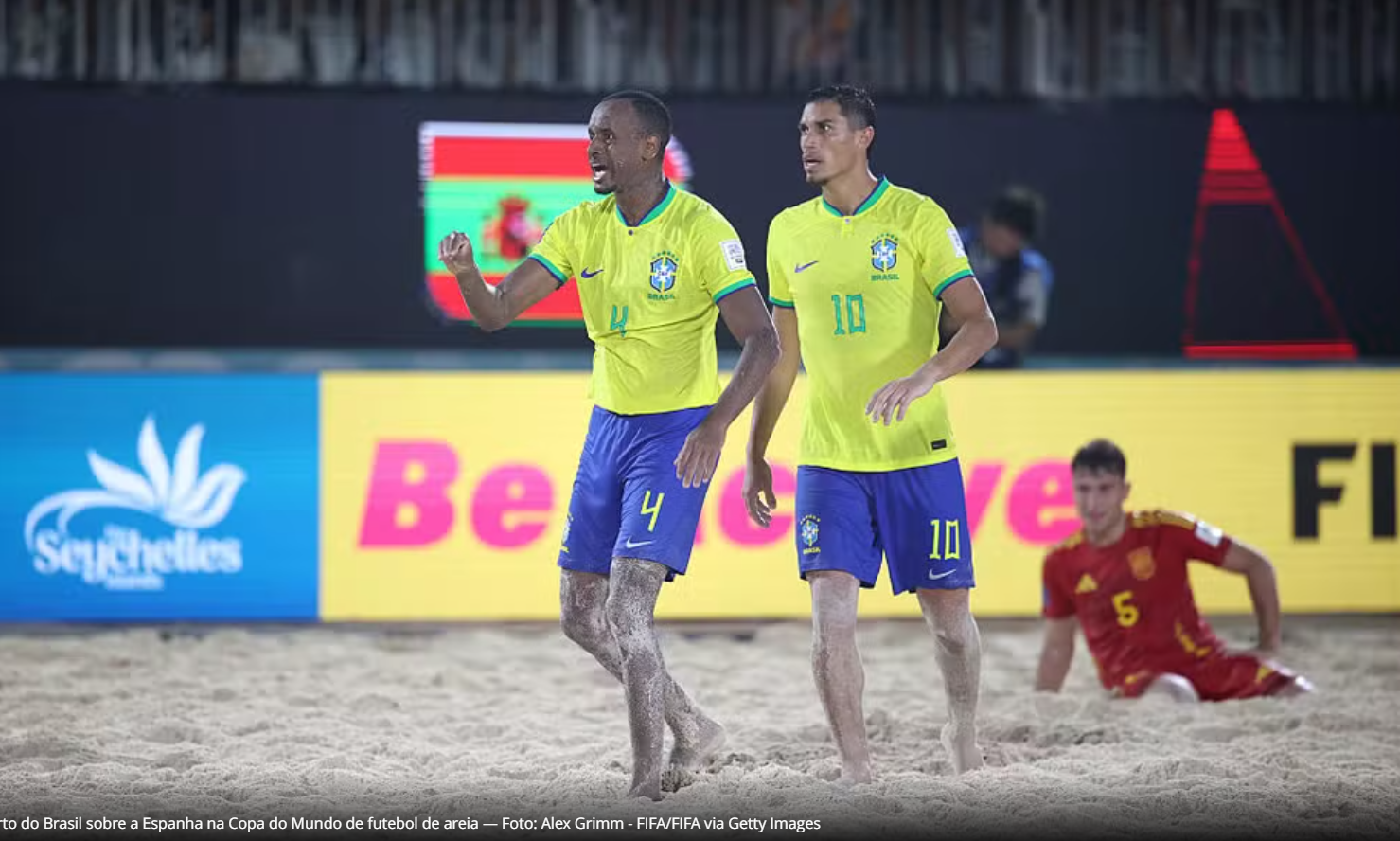 Brasil atropela a Espanha e vai à semi da Copa do Mundo de futebol de areia